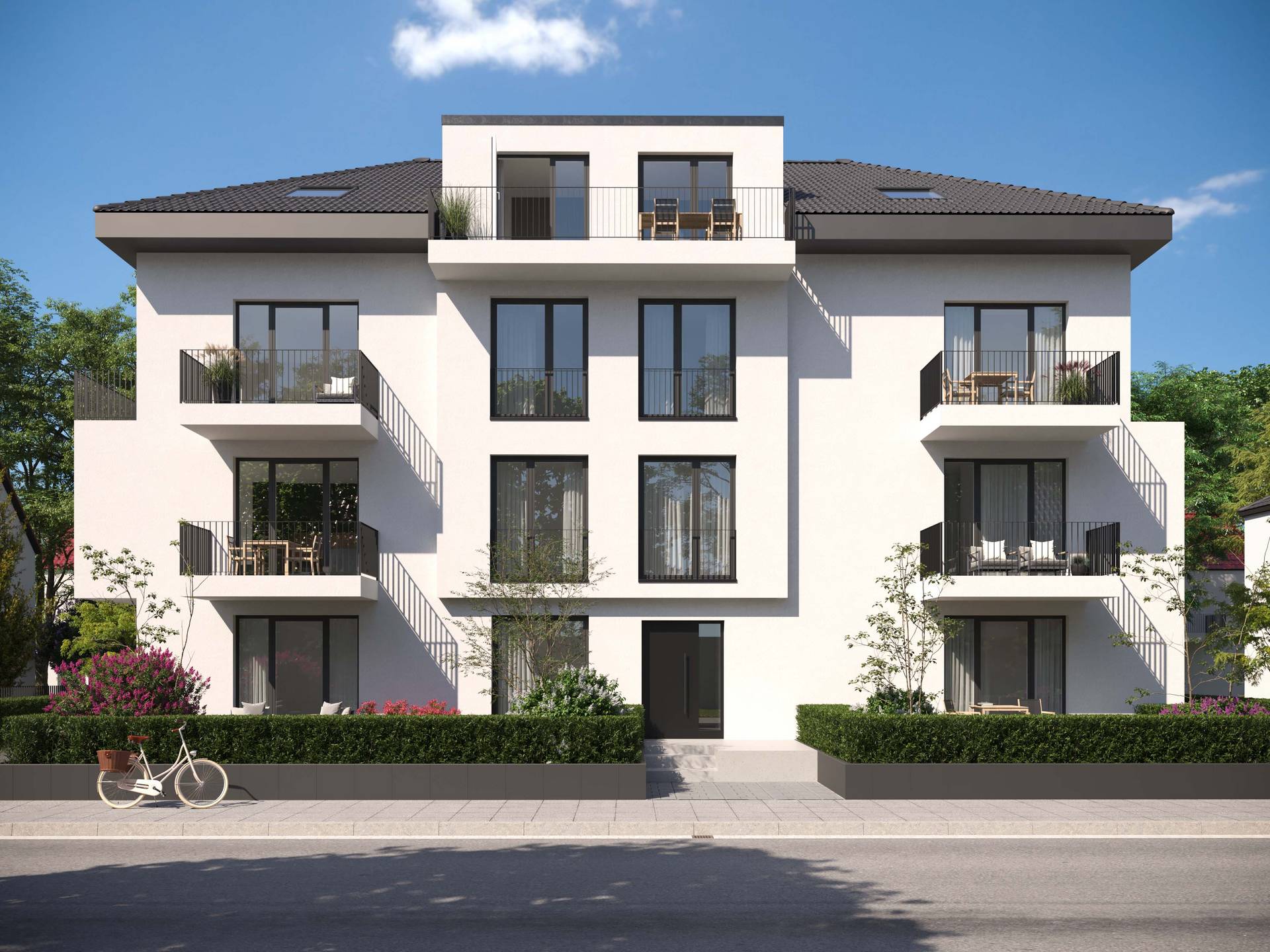 Η κατασκευάστρια εταιρεία του έργου « Οδός Linden 26» ανέθεσε στην gmsvision την παραγωγή υψηλής ποιότητας 3D βίντεο και φωτορεαλιστικών απεικονίσεων. Το έργο ξεχωρίζει για την καθαρή αρχιτεκτονική, την ήρεμη χρωματική παλέτα και τους καλά οργανωμένους υπαίθριους χώρους χαρακτηριστικά που αποτυπώνονται ατμοσφαιρικά στο βίντεο και αποδίδονται με ακρίβεια στις απεικονίσεις.