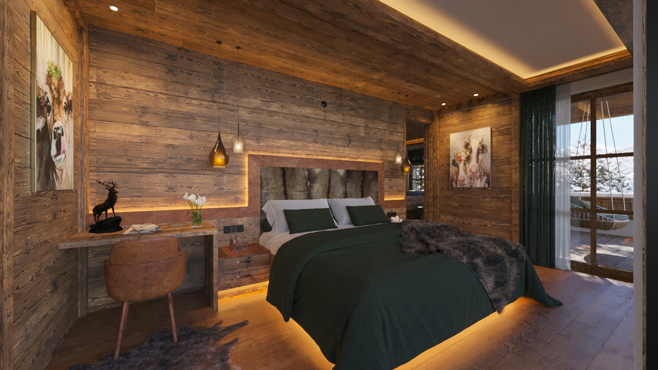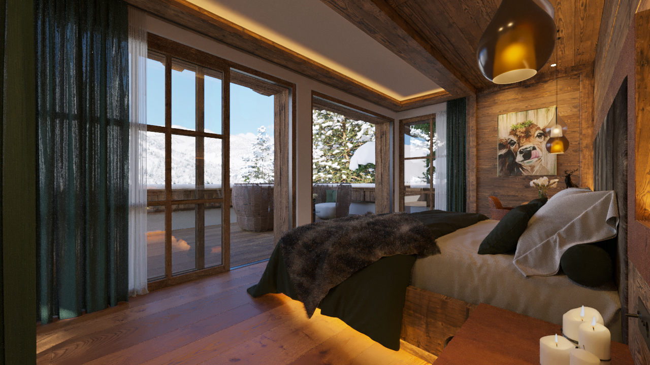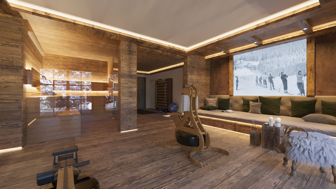 Επιπλέον, δημιουργήθηκε ένας κινηματογραφικός 3D project film που αναδεικνύει το chalet μέσα από ομαλές κινήσεις κάμερας και ατμοσφαιρικό φωτισμό.