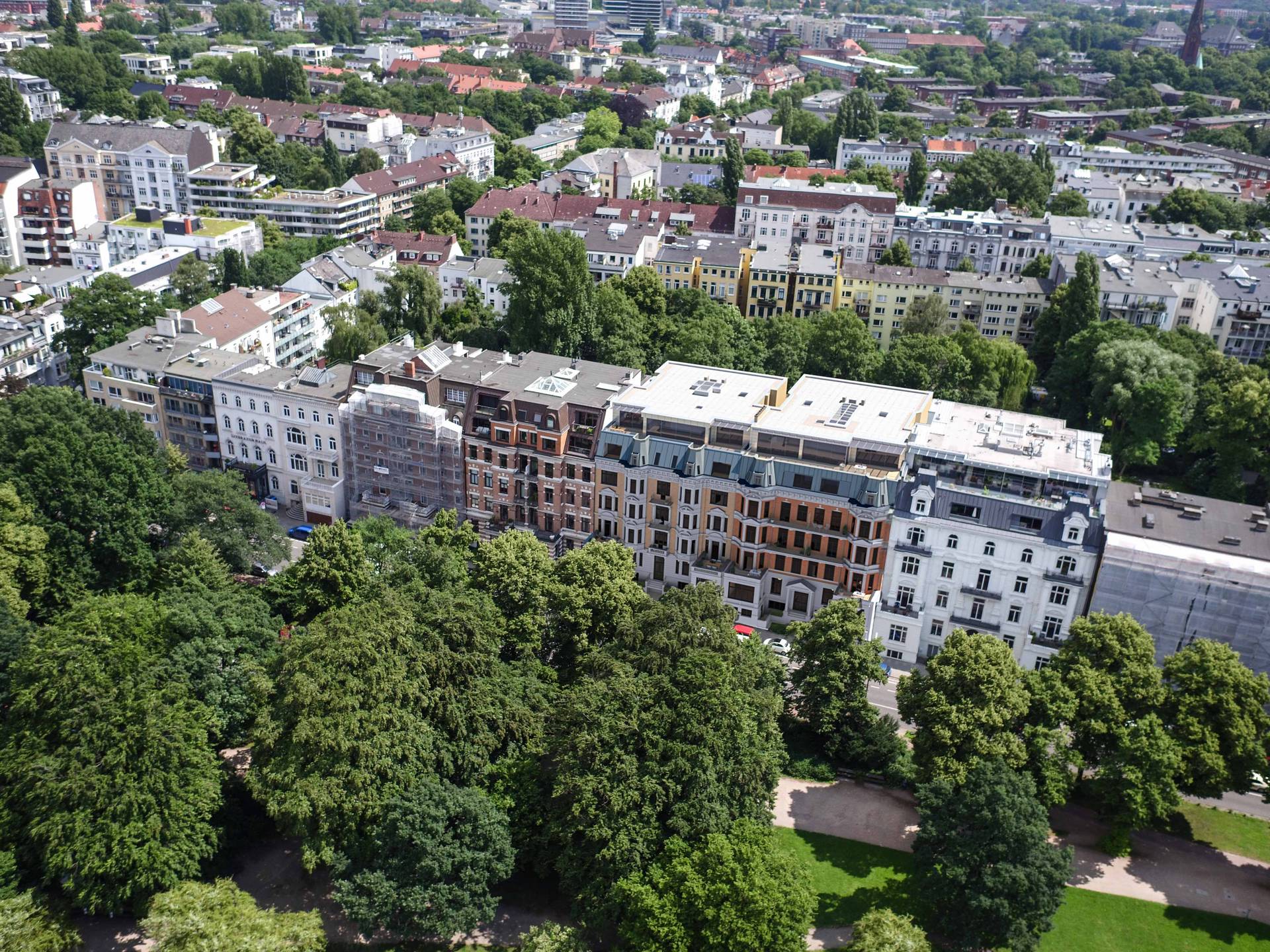 Το Alsterjuwel εντυπωσιάζει με την ιστορική του όψη με περίτεχνες λεπτομέρειες, μπαλκόνια και εξώστες. Η εκτεταμένη ανακαίνιση εκσυγχρόνισε πλήρως το κτίριο διατηρώντας ταυτόχρονα τον αρχιτεκτονικό του χαρακτήρα. Ψηλές οροφές, καλά υλικά και απευθείας θέα στη λίμνη Alster δημιουργούν αποκλειστική αίσθηση κατοίκησης.