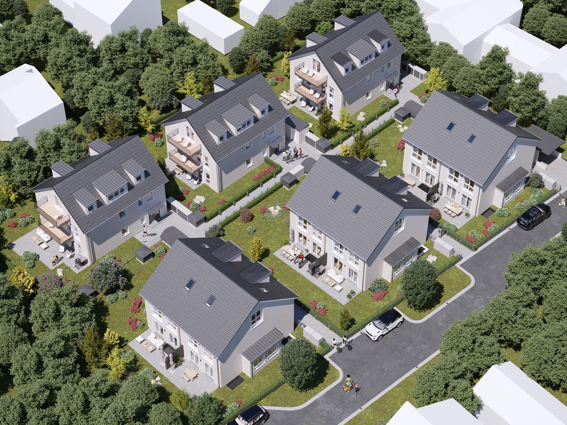 Η Αρχιτεκτονική Απεικόνιση Οικιστικού Έργου Hannover δημιουργήθηκε για ένα σύγχρονο οικιστικό σύνολο που συνδυάζει διπλοκατοικίες και μικρές πολυκατοικίες.